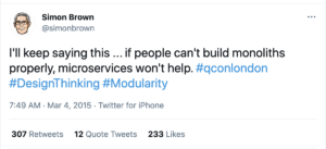 Pesquisando um pouco mais sobre o que o Simon Brown estava querendo dizer naquele tweet, chegamos a uma proposta bem interessante, que ele chamou de Modular Monoliths.